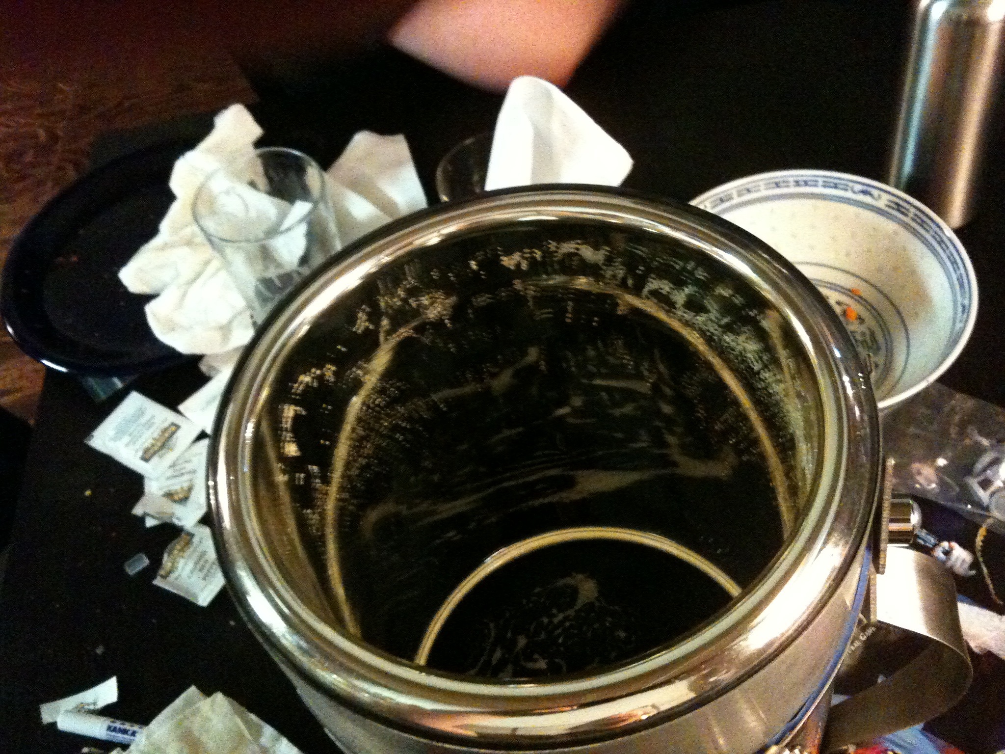 By 2am, with compatriots dropping off due to the cocktails I’d prepared during all this, I stared into the heart of the stein and had to confront the despondent reality that fatigue might claim me before I finished this beer.  A quick temp check told me that despite my drinking and no use of lid, there’d only been a .9 degree Celsius temperature gain from when I started 7 hours earlier.  My arm however was burning from the effort of drinking all this.  I am not in good enough shape to do eight hours worth of 30lb arm curls and I was drunk/stupid enough to do most of that with one arm.