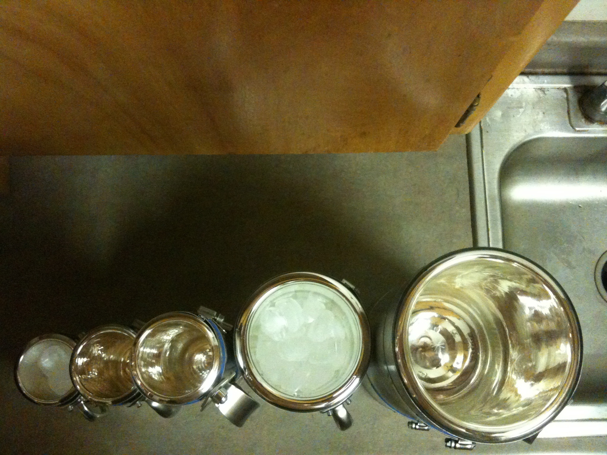 The 1900ml looks a bit wee from this perspective, doesn’t it? How about from above? (Note: the 350ml & 1900ml are filled with ice for post-assembly vacuum testing)