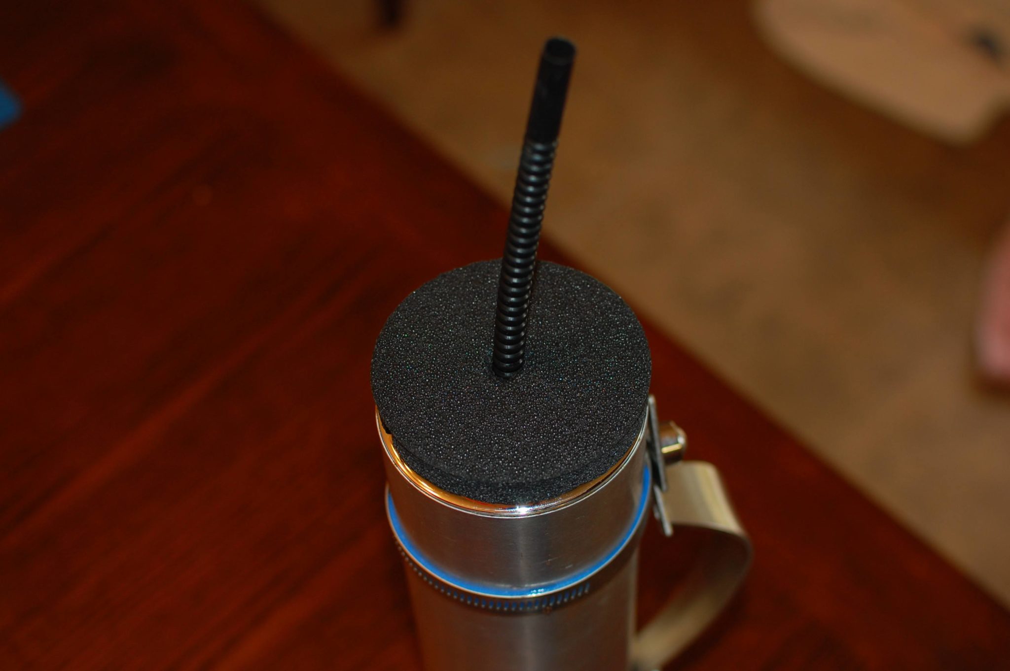 Anyway, Steinwielder Pulliam did verify that his stein fits in his cupholder nicely but has resisted filling it with ice and soda for a day of errands for fear of spillage…until now. He has made a minor modification to the lid of his stein adding a straw. While this does add a bit of a thermal short circuit from the ambient air temperature to the beverage, this will be far better than transfer through a normal cup. No, I don’t feel like doing the heat transport calculations to verify this so we’ll just have to go with intuition and his empirical testing. Check out his work: