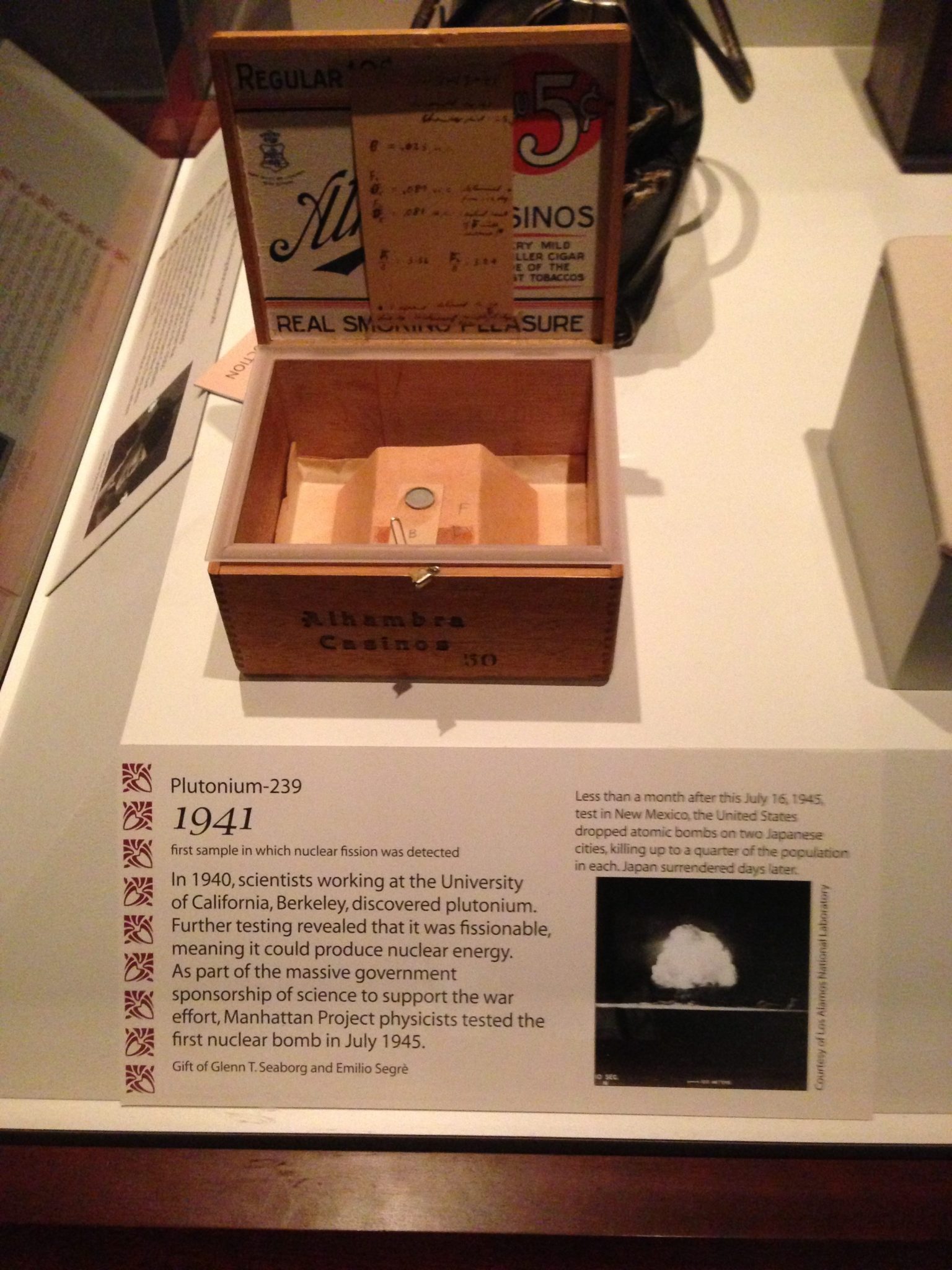 commissions, agencies, departments, and universities like they were Pokemon, Glenn also collected souvenirs of all the places he’d gone, the projects he participated on, and the discoveries made. When you keep in mind that this is the man who rode on a train with the sole sample of plutonium in the world in his possession, his souvenirs get a bit interesting. And what did he always stick them into? One of the ubiquitous cigar boxes lying around his office, home, or hotel room as he never traveled without them and smoked like a chimney.