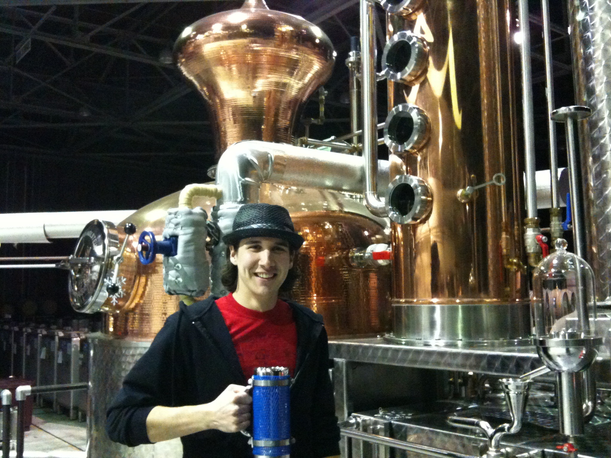 Figure 6: The Ocho, with Steinwielder Chris, standing in front of the absinthe still at St. George Spirits in Alameda, CA (AKA The Happiest Place on Earth)