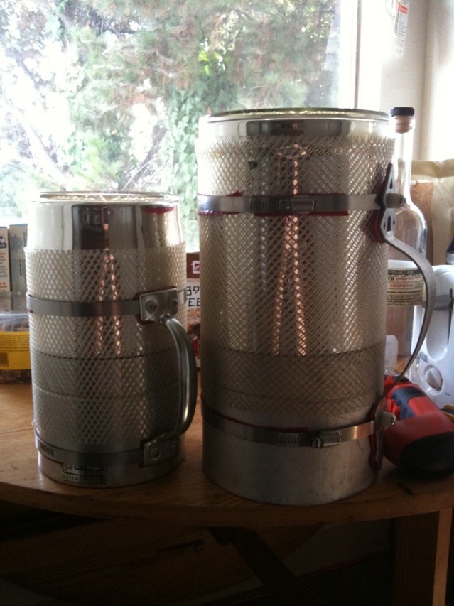 Not long after Oktoberfest, I shared my creation with the Funranium Labs Staff X-Ray Crystallographer. He was so impressed by Der Wissenschaftenstein that he commissioned the construction of an even greater vessel to inspire shock and awe at the weekly UC Berkeley Chemistry Department beer consuming social hours, lovingly known as ChemKeg. The new stein performed admirably and has been dubbed “The ChemKeg Dominator”. When not filled with sweet, sweet barley pop, the ChemKeg Dominator enjoys a commanding position in his office, greeting all who seek audience. It is pictured below side by side with the original 1900mL, dwarfing it in a frightening manner.